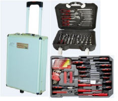 Include: recuperator magnetic, set de clesti, cate un set de surubelnite pentru atelierele de mecanica si electrica, set de chei combinate, set de chei tubulare, set de capete de surubelnita, set de chei tip imbus. Sunt amplasate in suporturi termoformatate dispuse intr-o geanta din aluminiu cu sistem de inchidere si de transport tip “troller”.